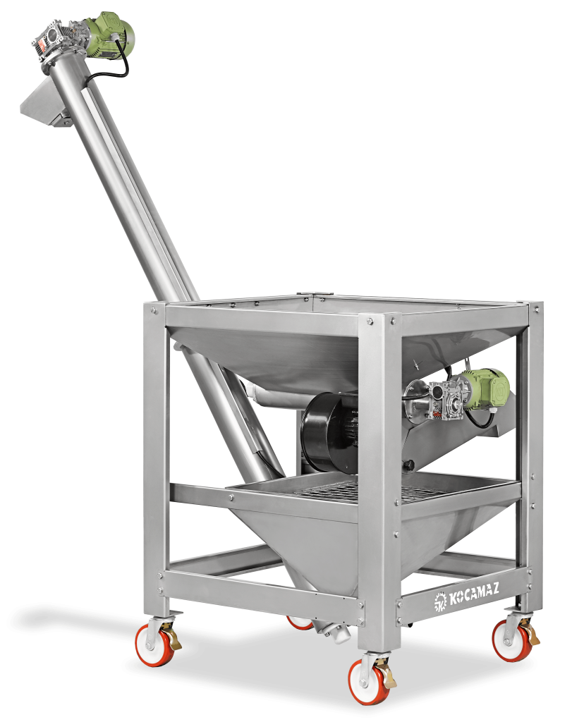 Master 200 PROF olive washing and defoliation unit is a model that works effectively for olives that have a low-medium density of leaves. There is an adjustable-speed screw conveyor for olives that works in a horizontal position on the upper bunker of the unit. Adjusting the speed of the screw conveyor enables the leaves to be discharged from the system in a much more homogenous way.
