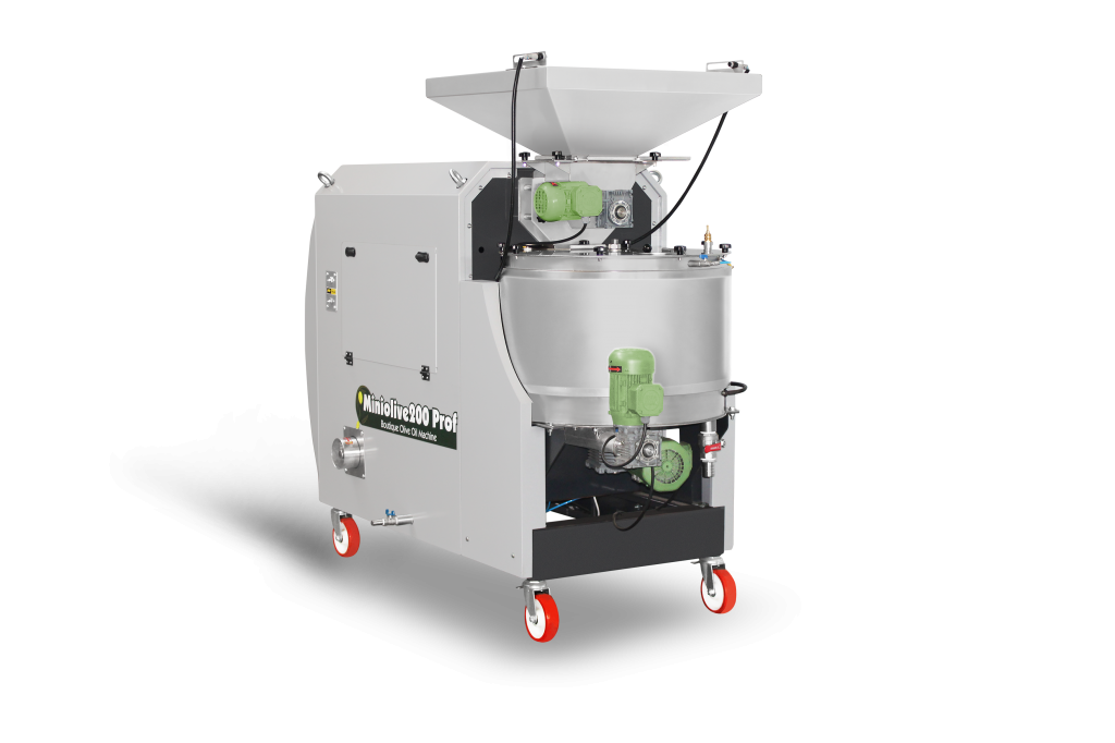 This series is preferred by small and medium-scale boutique olive oil producers. Operated with auxiliary machinery and equipment, it enables you to create a reduced olive oil production line in limited locations. It has the capacity to process 150-200 kg of olive paste per hour. In Miniolive 200 PROF series machines, the cycloid gear box system gives the decanter more strength and enables it to work more quietly.