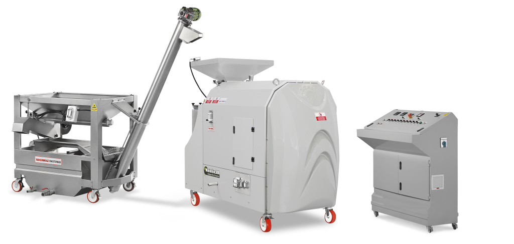 The operation of the system is similar to other Master Series washing units. Water is filled into the water circulation pump and the unit is prepared for operation. The collected olives are put on the top bunker of the machine, the olives are discharged into the lower bunker of the machine through the adjustable-speed screw conveyor for olives. After the olives fall into the lower bunker, leaves and pieces of branches among them are thrown out of the system by means of a fan. Stones or foreign bodies that have blended in the system are stored in a separate area and manually thrown out of the system from here. Cleaning water of Master 600 model units is replaced at certain intervals.