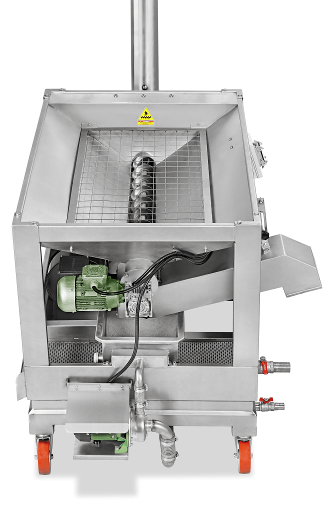 Master 600 Olive Washing and Defoliation Unit is a model that works effectively for olives that have a low-medium density of leaves. It keeps possible stones and foreign bodies that might have fallen in the washing unit in its chamber thus prevents damages to the system. There is an adjustable-speed screw conveyor for olives that works in a horizontal position on the upper bunker of the unit. Adjusting the speed of the screw conveyor enables the leaves and pieces of branches to be discharged from the system in a much more homogenous way. The water circulation pump employed in the system creates a waterfall effect, hence, olives get free from undesired materials in a short period of time and are sent for the next operation in a clean state.