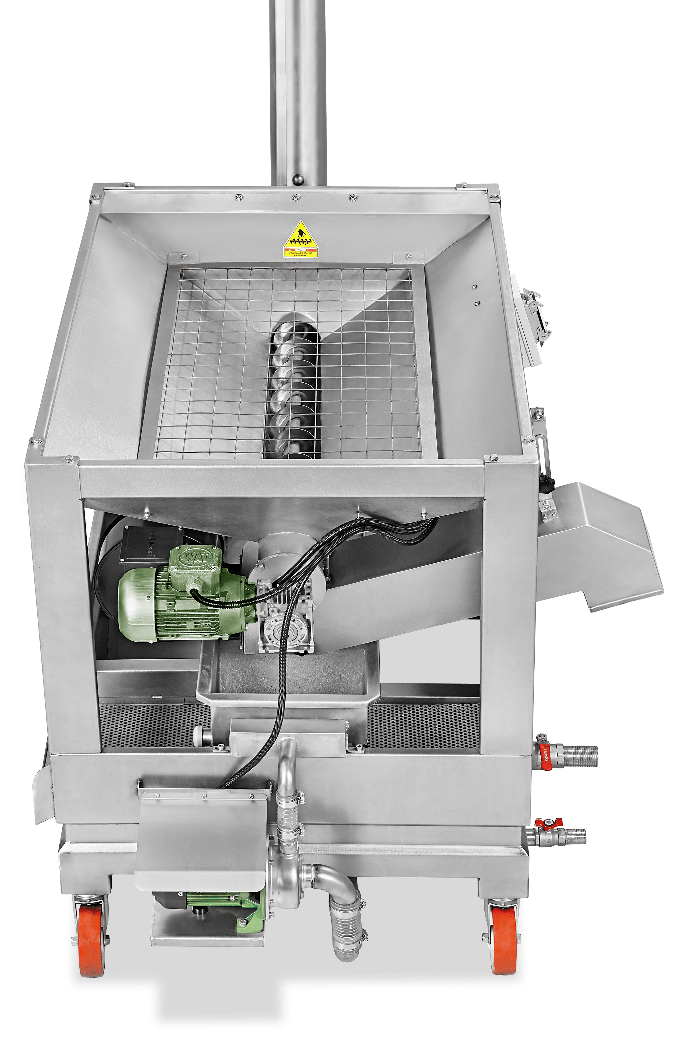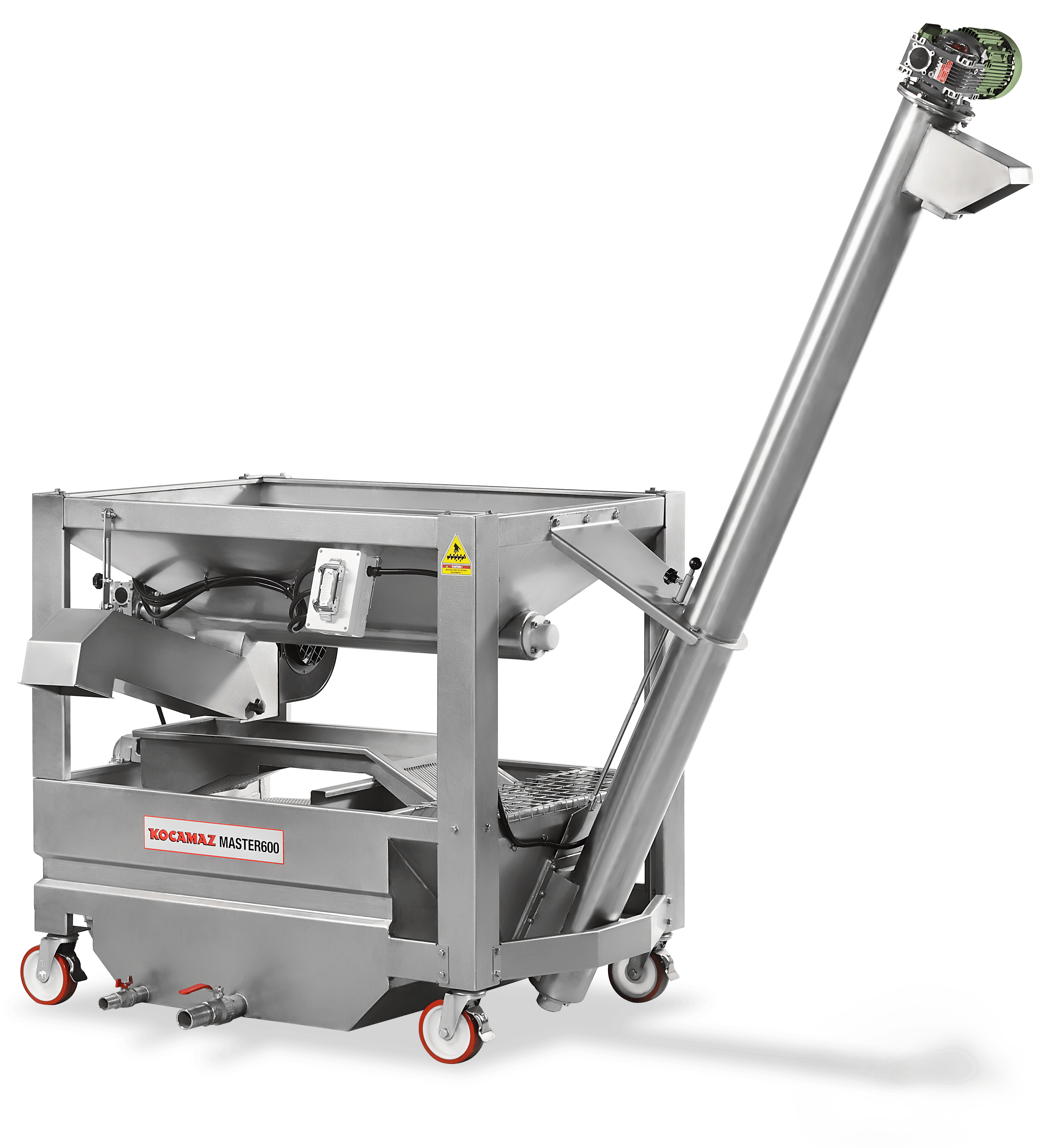 Master 600 Olive Washing and Defoliation Unit is a model that works effectively for olives that have a low-medium density of leaves. It keeps possible stones and foreign bodies that might have fallen in the washing unit in its chamber thus prevents damages to the system. There is an adjustable-speed screw conveyor for olives that works in a horizontal position on the upper bunker of the unit. Adjusting the speed of the screw conveyor enables the leaves and pieces of branches to be discharged from the system in a much more homogenous way. The water circulation pump employed in the system creates a waterfall effect, hence, olives get free from undesired materials in a short period of time and are sent for the next operation in a clean state.