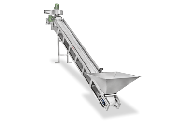 Screw conveyor with bunker carries the cleaned olives from olive washing and defoliation unit to the crusher unit of the system.