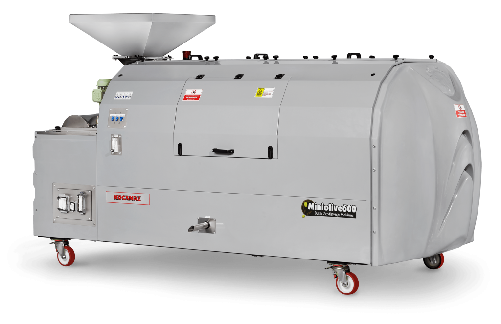 It is a model preferred by large-scale boutique olive oil producers. Operated with auxiliary machinery and equipment, it enables you to reach high production capacities in limited production locations. Miniolive 600 series machines have the capacity to process 550-600 kg of olive paste per hour. Its double malaxator structure enables olives of different types and sizes to be simultaneously processed in separate malaxators reducing waiting times, thus it enables the olives of different types and sizes to be processed faster. The cycloid gear box system in the machine gives the decanter more strength and enables it to work more quietly.