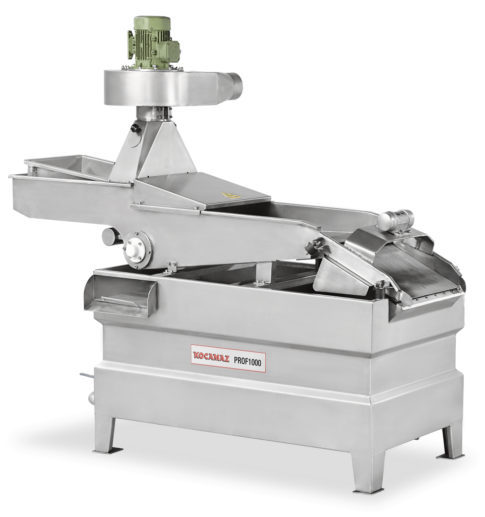 PROF 1000 Olive Washing and Defoliation Unit is a model that works effectively for olives that have dense leaves and pieces of branches. It keeps possible stones and foreign bodies that might have fallen in the washing unit in its chamber thus prevents damages to the system.