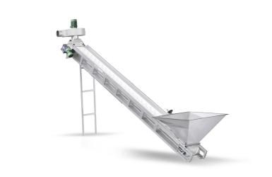 Screw conveyor with bunker carries the cleaned olives from olive washing and defoliation unit to the crusher unit of the system. It consists of a bunker; a screw and a reducer engine, which makes the screw operate. Crusher elevator is manufactured from AISI 304 stainless steel in accordance with the food instructions.