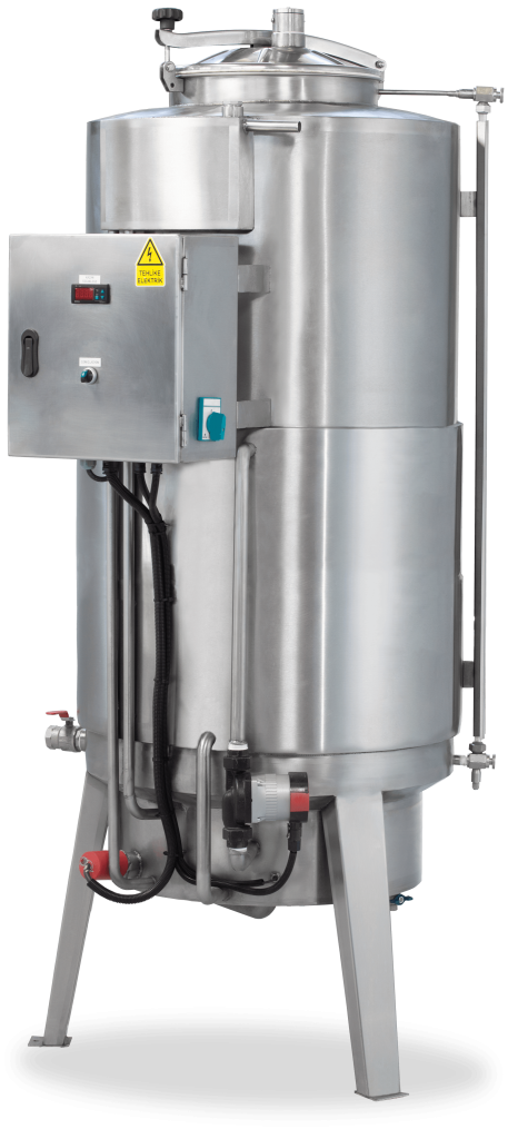 Cone bottom filtration tanks are manufactured with double walls. The wall surrounding the external surface of the tank is filled with water, and by means of a resistance and circulation pump, hot water is circulated around the tank. The second wall of the tank is the section, where there is olive oil. In this section, the temperature to store the olive oil is determined by means of a digital thermostat connected to the heat probe. The heat value determined is set not to exceed 27 degrees. The system activates the hot water circulation based on the set value of the olive oil and stops the hot water circulation when the targeted heat value is reached.