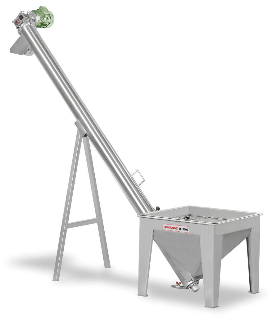 Οι ελιές, οι οποίες συνεχίζουν να προχωρούν μέσα από το κανάλι του νερού από το δονούμενο κόσκινο με τη ροή της κυκλοφορίας του νερού, περνούν πάνω από ένα πλέγμα και χύνονται στην αποθήκη ελιάς του ανελκυστήρα θραυστήρα όπως καθαρίζονται. Η ειδική καμπύλη φιλοξενεί ξένα σώματα με μεγάλη πυκνότητα εδώ. Στη συνέχεια, ξένα σώματα πετιούνται έξω από το σύστημα με τη χειροκίνητη σπειροειδής εκκένωσης.