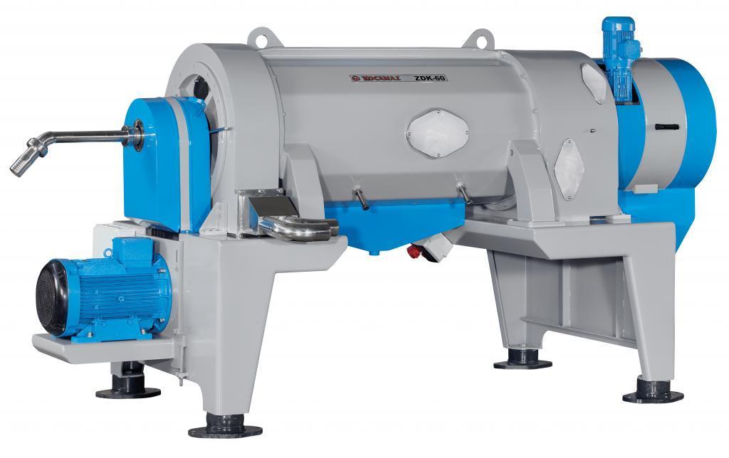 Decanter is used to decompose the residue, water and the olive oil on based of respective specific gravities as a result of the centrifuge forces by pressing the paste in the tank at high speeds. A peeling off system was developed in the front side in order to prevent the accumulation of the residue on surfaces once exited from the drum. Main chassis of decanter drum is made of steel St 37. Each surfaces of decanter became in contact with the olive paste is produced out of stainless steel AISI 304 conforming to the food regulations. Decanter was designed to be operable at two and three phases. The residue, wastewater and the oil are extracted from decanter at three phased systems and the residue & oil from decanter at double phased systems (ecologic systems).